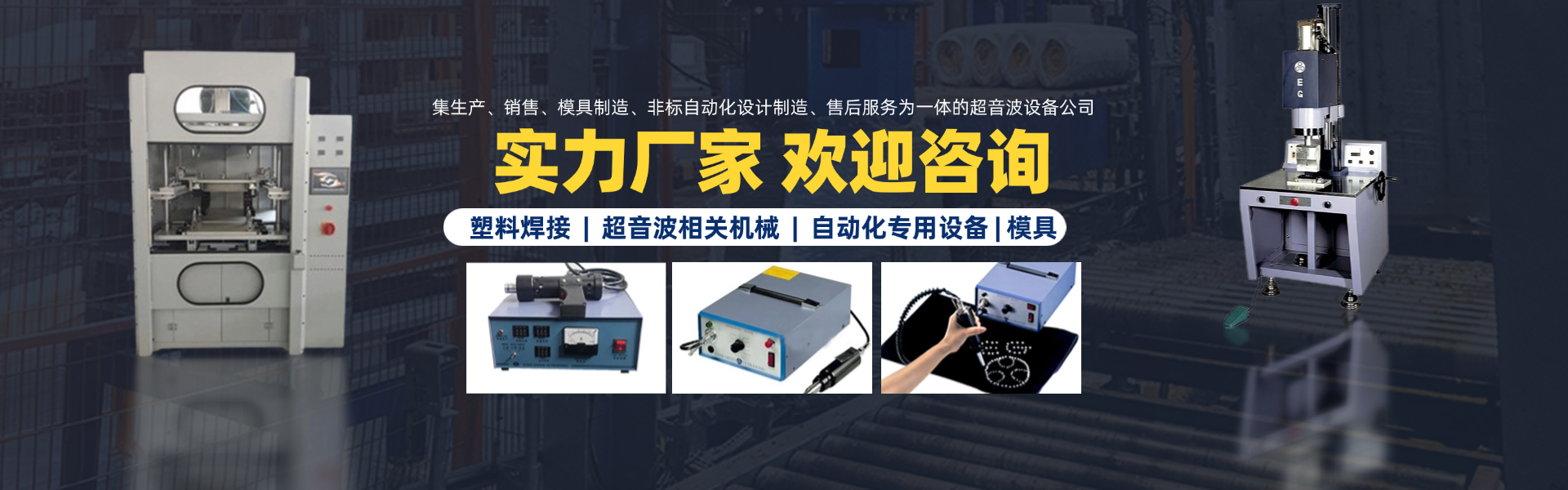 廈門萇榮機械設備有限公司是長榮超音波集團在福建設立的公司,我們主要供應臺灣長榮系列超聲波機器。 長榮超音波集團成立于1991年,麾下的兩個生產基地,分別建立在臺灣和上海,公司主要專業設計指導各種塑料焊接、超音波相關機械、模具及以本業為核心結束各類自動化專用設備。 廈門萇榮機械設備有限公司是集生產、銷售、模具制造、非標自動化設計制造、售后服務為一體的超音波設備福建公司,集團公司及本公司成立二十余年來,設備技術日趨完善,并通過ISO-900認證,在超聲波行業有良好的信譽。 目前我公司產品系列有: 1)超聲波塑膠熔接設備及模具; 2)高精度自動追頻超聲波焊接機; 3)超聲波縫制機系列; 4)超音波清洗系列; 5)熱板式焊接機系列及模具; 6)汽車零部件生產設備; 7)各種非標專用機設備設計與制造。